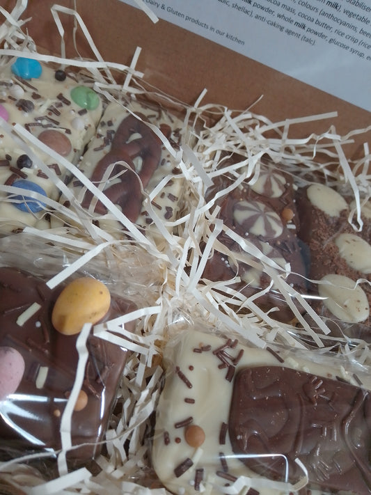 Belgian Milk Chocolate Flapjack Slab with Chocolate and Jelly Sweets.